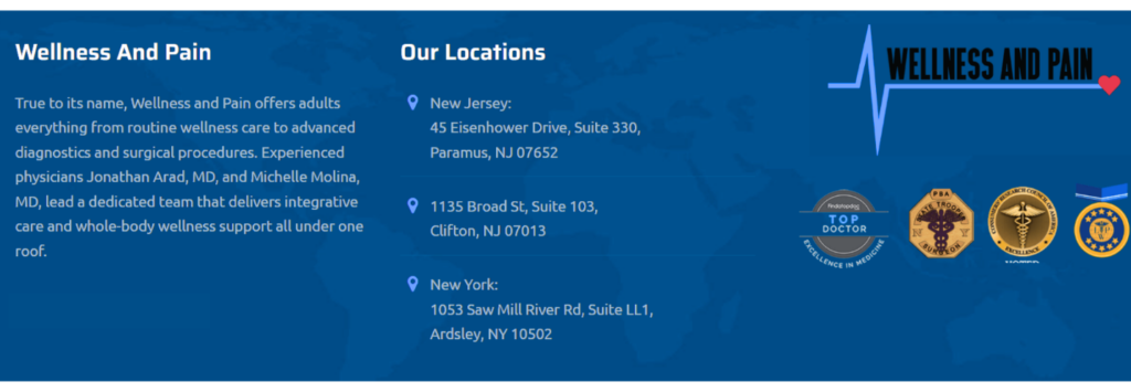 Reaching out to Wellness and Pain works a few different ways. Calling 844-566-2723 connects patients with their scheduling team. Texting 551-286-5464 offers another option for those who prefer messaging. Their offices in Paramus NJ, Clifton NJ, and Ardsley NY all accept new patients looking for answers about vein problems and possible vein ablation treatment options.
